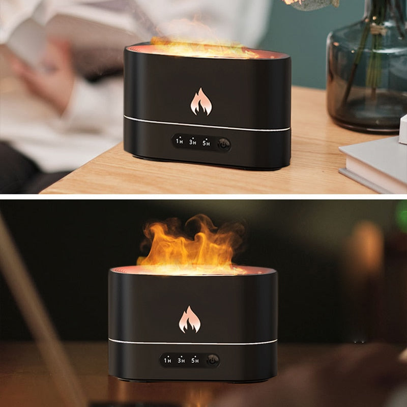 180ML Air Humidifier Essential Oil Diffuser Ultrasonic Mist Maker Simulation Flame Lamp USB for Living Room Yoga