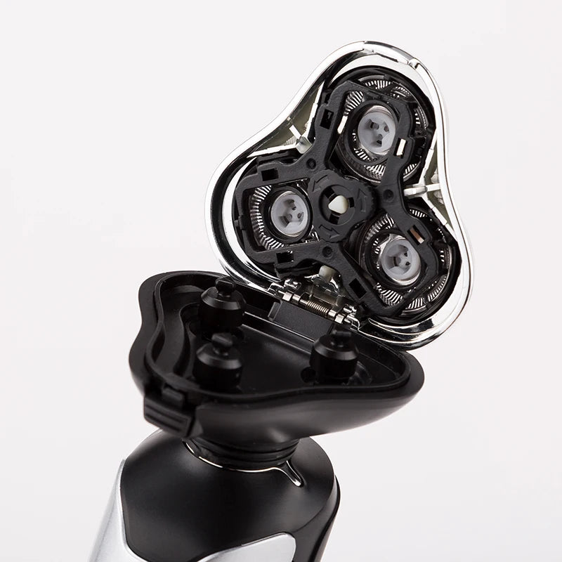 This product is a rechargeable shaver. when you use,you just take a little soap and water,switch the shaver on until the soap lathers nicely.then rinse off with water.This product has four floating razor heads ,individually reflex action system can always get close to the facial contour to effectively shave the hair of any lengths and in any growing directions.reasonable design & the cooperation of five blades will bring about better shaving effect.