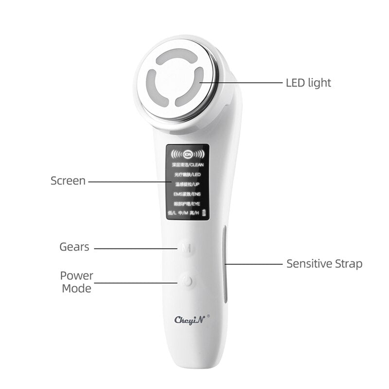 Mode: deep cleansing, light rejuvenation, warm lifting, EMS firming, eye care
