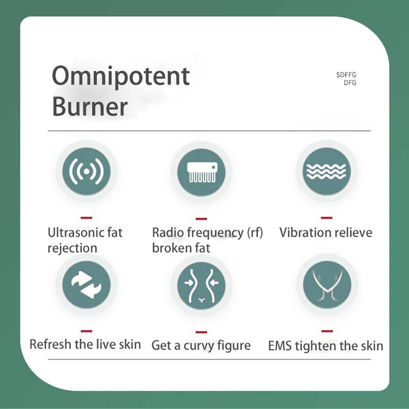 RF radio frequency + mechanical vibration + CV ultrasound + EMS micro current + LED red/blue light, to help you shape beautiful curves.