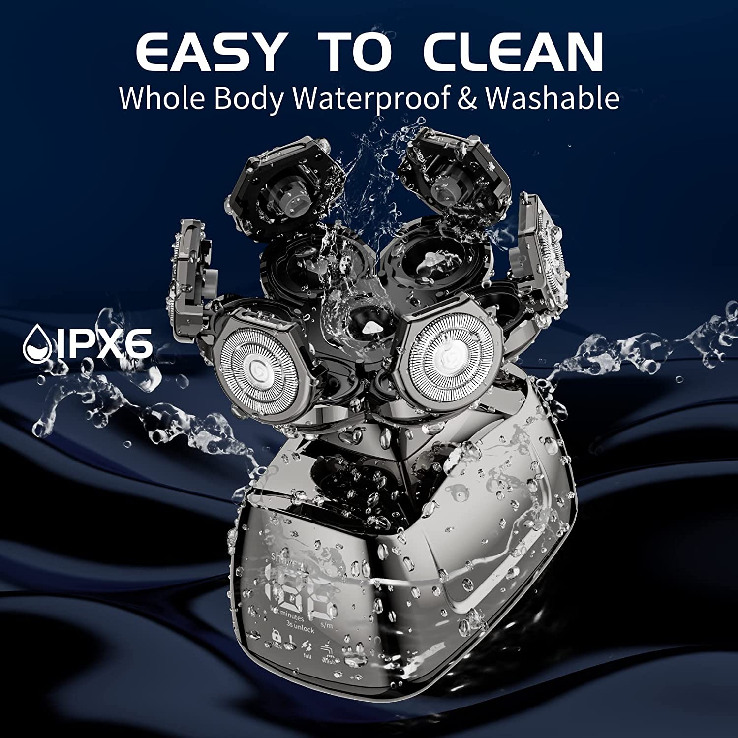 7D Head Shaver Electric Razor for Men 6 In 1 Grooming Head Shaver Trimmer Waterproof Wet/Dry Shavers LED Display Cordless Razor