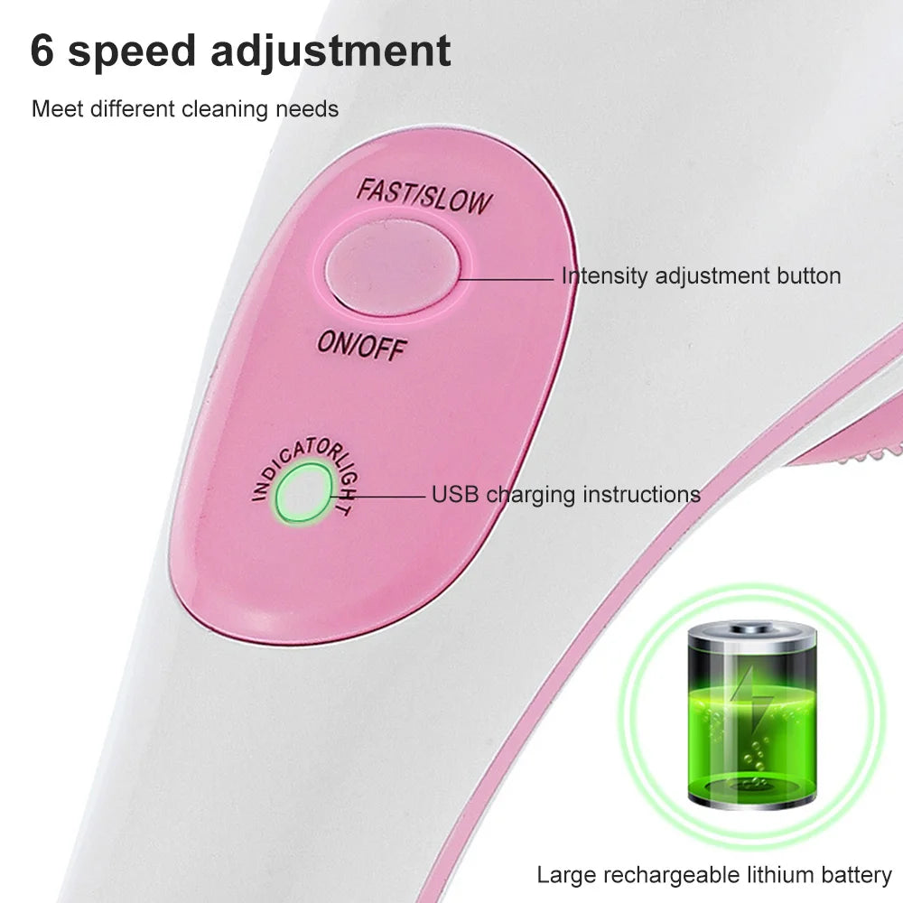 1. Contains five types of brush heads, which are all-in-one for face washing, back rubbing, foot rubbing, exfoliation and massage.
