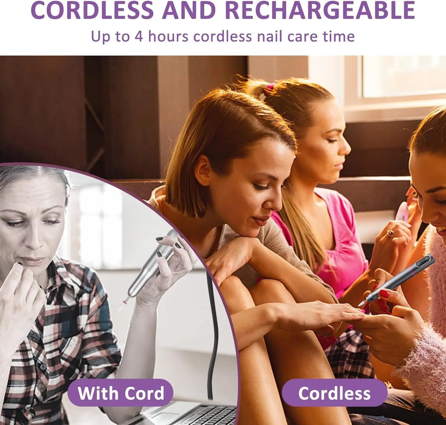 Professional Electric Nail Rig Cordless Electric Nail File Manicure and Pedicure Kit for Acrylic Gel Nail Polishing and Trimming