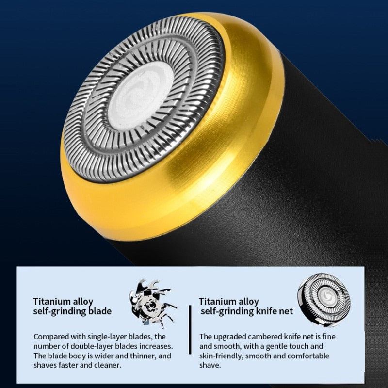 Titanium Alloy Floating Cutter Head:Double-layer blades, clean shave, curved knife net, fine and smooth, smooth and comfortable shave