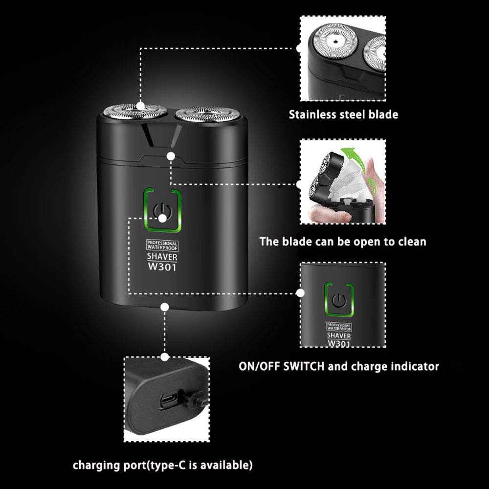 Electric Waterproof Shaver for Men USB Rechargeable Portable Rotary Double-head Shaver Mini Pocket Shaver