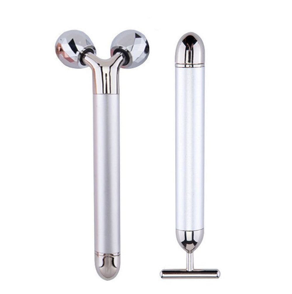 Energy Beauty Bar 24K Gold Facial Vibration Massager Anti Aging Skin Tighten V-Face Lifting Massage Roller Chin Reducer