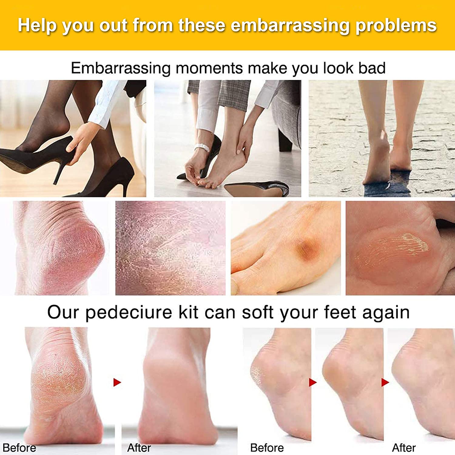 Occasions: Suitable for both professional and home pedicure, good for removing callus, corn, hard skin, foot peel, cuticle, etc. Gently remove corn on the foot, peel the dead or rough skin, smooth yours Feet and polish the nails.