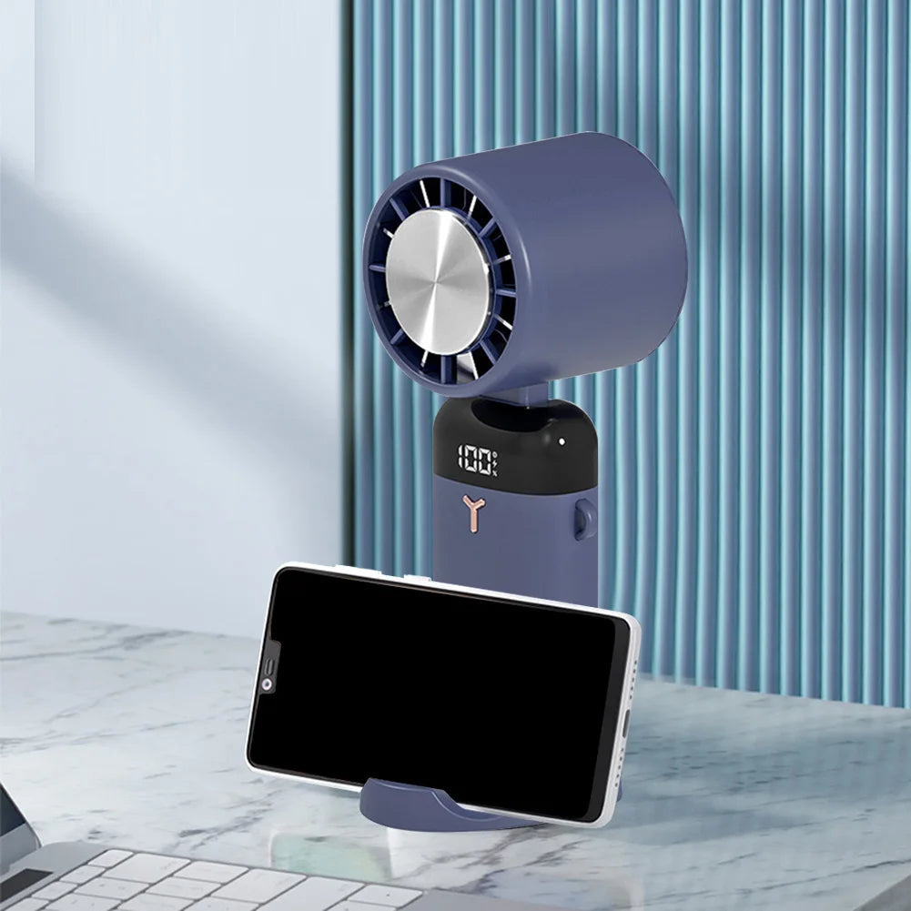 Handheld Portable Fan 3 Speed Foldable Desktop Fan USB Rechargeable 3600mAh LED Digital Display for Home Office Travel Dormitory