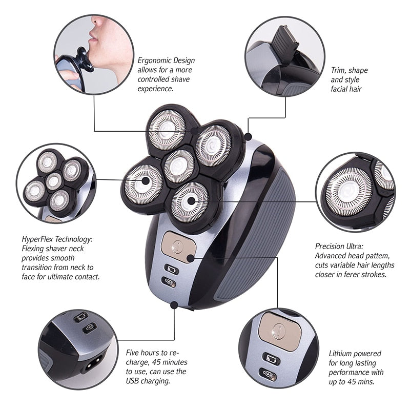 IPX7 High Quality 5 in 1 Men's Electric Shaver Waterproof USB Rechargeable Shaver Hair Trimmer Beard Trimmer Wet & Dry Razor