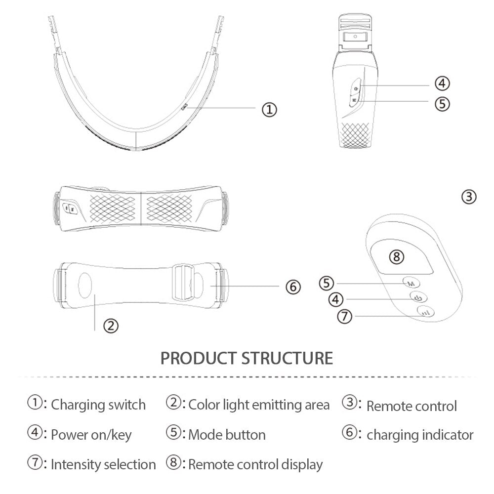 1.Three main working modes:red-blue light intermittent alternating vibration mode, red-blue light continuous alternating vibration mode, and blue light static irradiation mode.