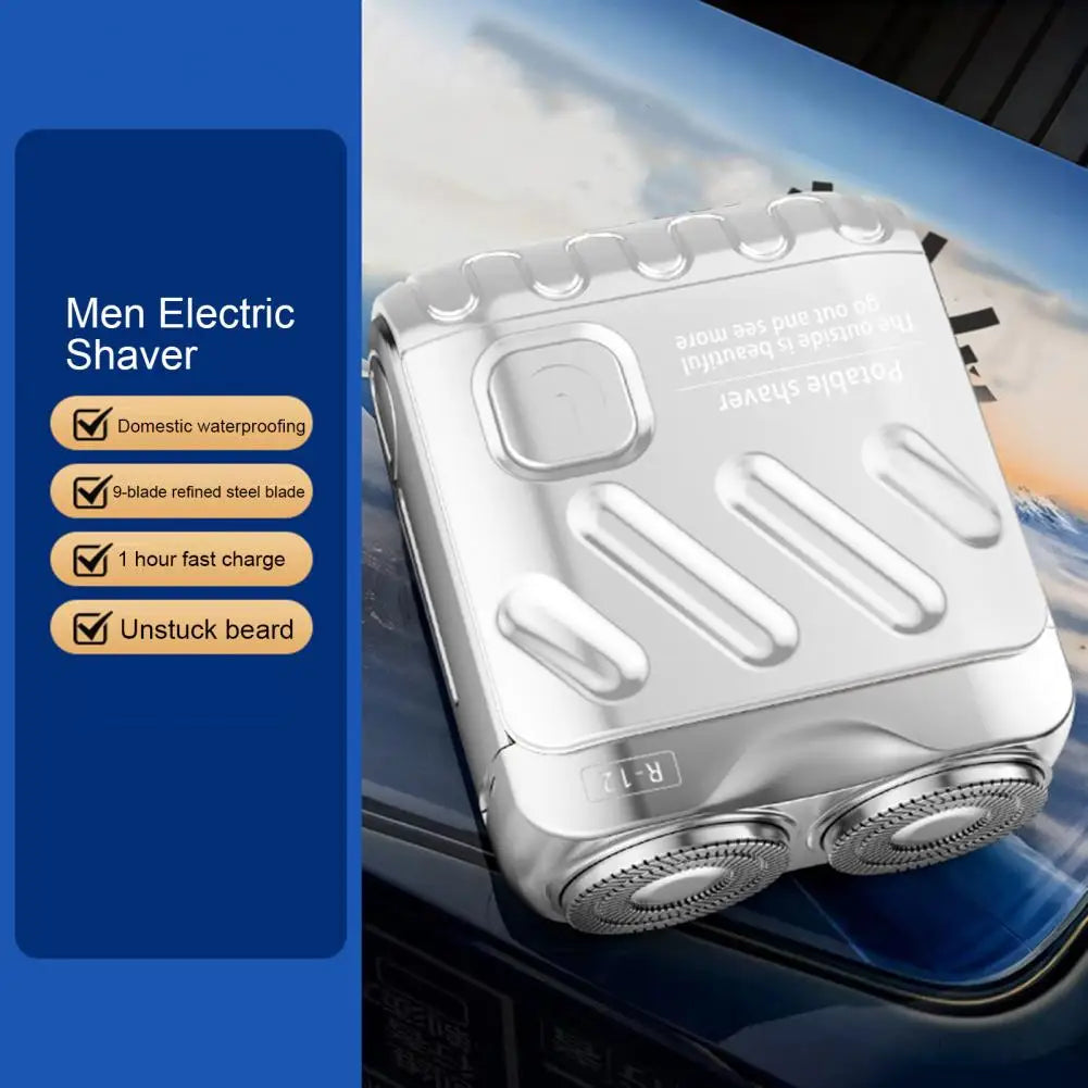 Men Electric Shaver IPX7 Waterproof Type-C Rechargeable Mini Travel Rotary Razor Portable Hair Beard Trimmer Remover Tool