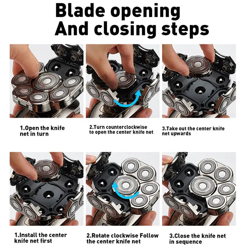 Men's Bald Head Electric Shaver 9 Blades Floating 6In1 Heads Beard Nose Ear Hair Trimmer Clipper Facial Brush Rechargeable Razor