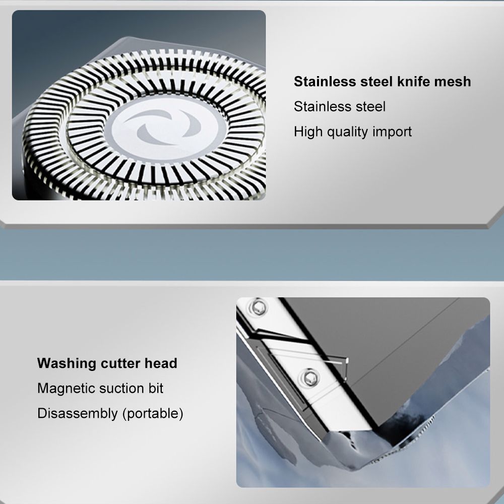 【Double-ring Cambered Knife Net】-Imported steel, double-ring cambered knife net, with independent double knife head design, stronger and more long lasting, wider outer rail, and small holes in the knife net to accurately locate short hairs. Rotary veneer shave, round and smooth to reduce skin friction.
