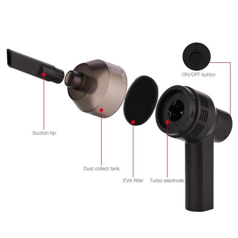 Mini Portable Car Handheld Vacuum Cleaner Cordless USB Rechargeable Vacuum Cleaner Keyboard Home Office Car Cleaning Machine (Black)