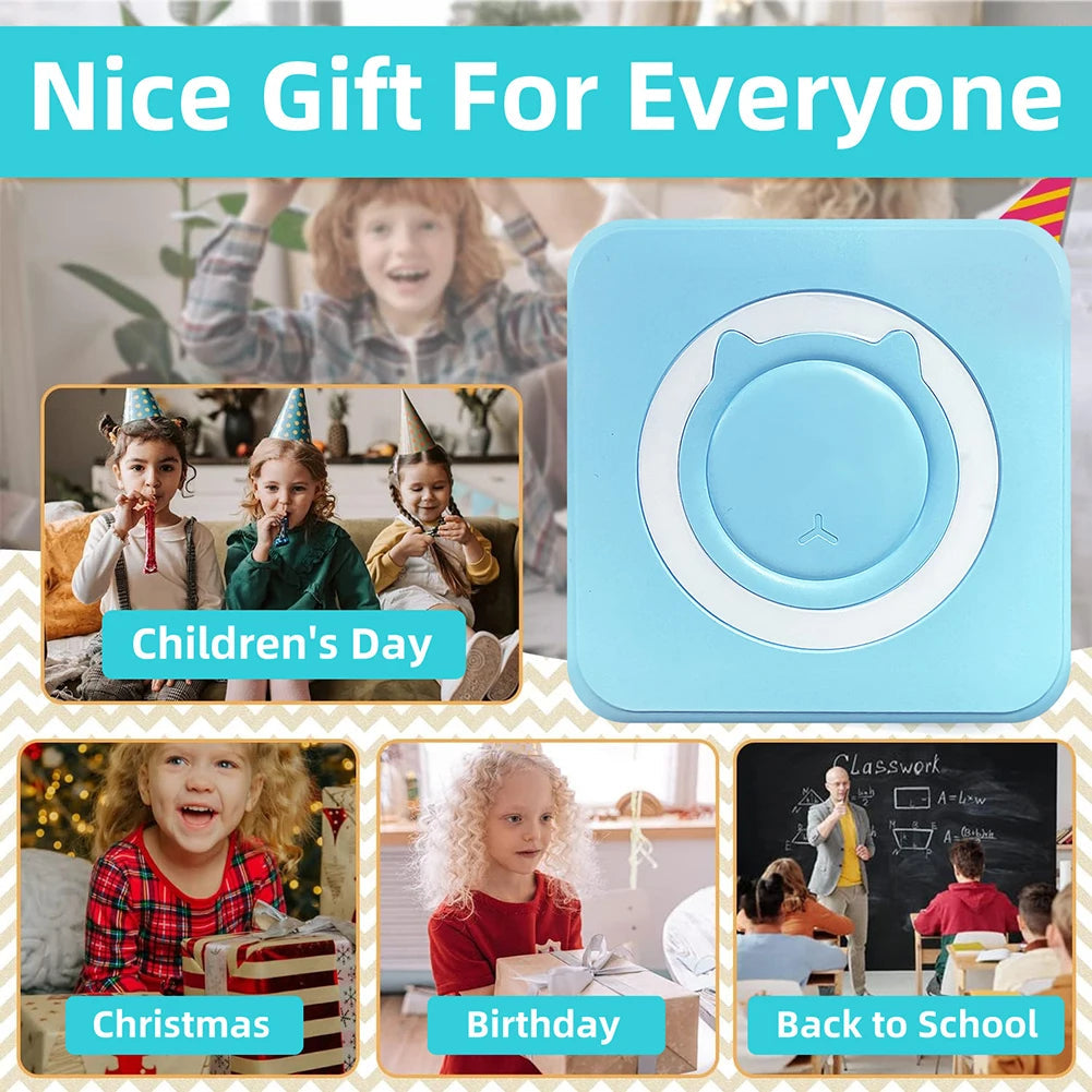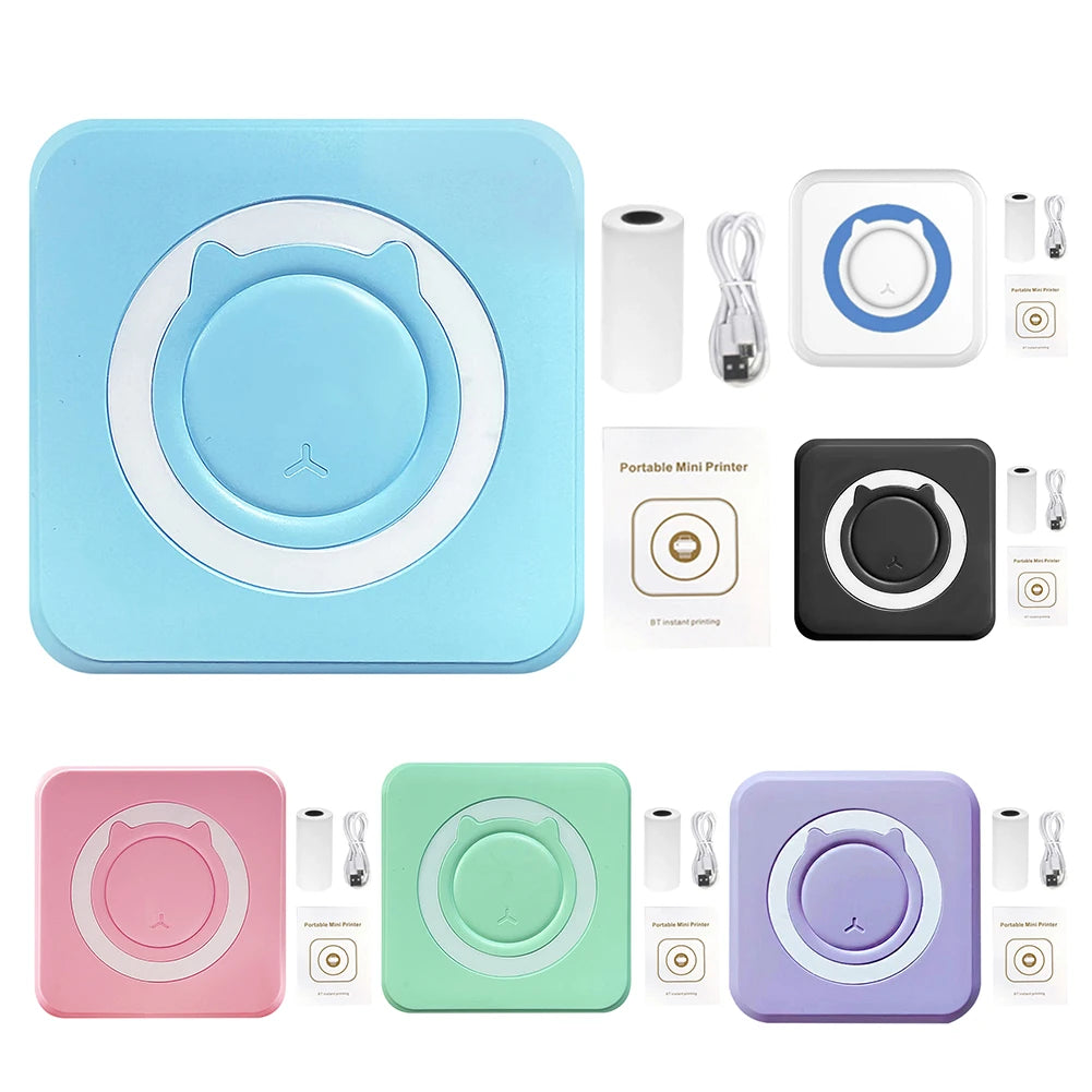 Mini Printer Portable Thermal Stickers Paper Inkless Bluetooth Wireless Thermal Printer Note 200DPI Photo Printing for Office
