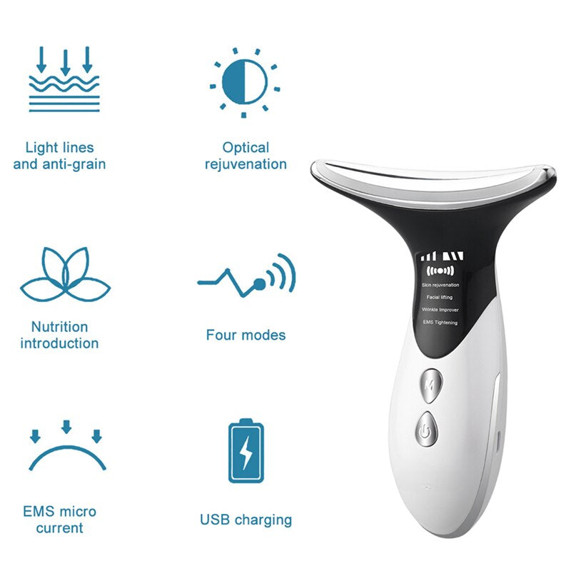 1. Ultrasonic massager head achieve the effect of anti-wrinkling and beauty skin of neck By warm feeling skin and colorful tender skin.