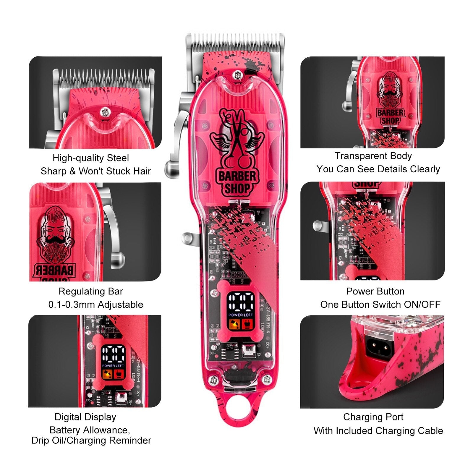 LED Digital Display: LED display of hair clippers indicate drip oil reminder, charging reminder, battery allowance. The set can be used as a birthday gift, festival gift for dad, husband, boyfriend and male friends.