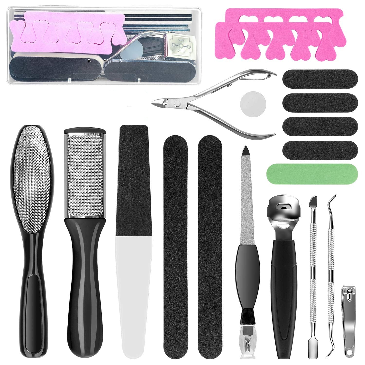 Pedicure Kit 20 in 1 Black Stainless Steel Professional Pedicure Tools Set Foot Rasp Peel Callus Dead Skin Remover Foot Care