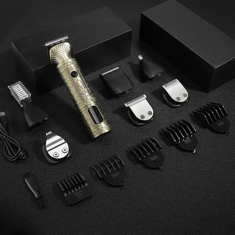 Professional Barber Cordless Full Set 7 IN 1 Trimmer Set Electric Shaver Clipper All Metal Hair Trimmer set Home