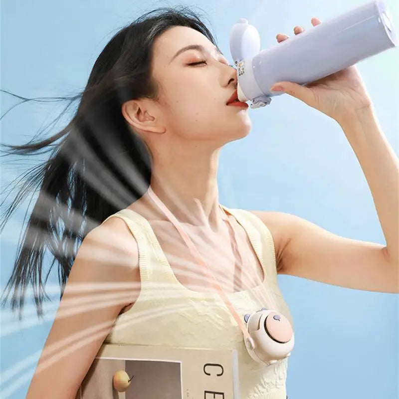 Small Fan Cute Rechargeable Electric Fan Hanging Neck Mute Summer Gifts Mini Neck Fans Cartoon Personal Fans Home Appliance