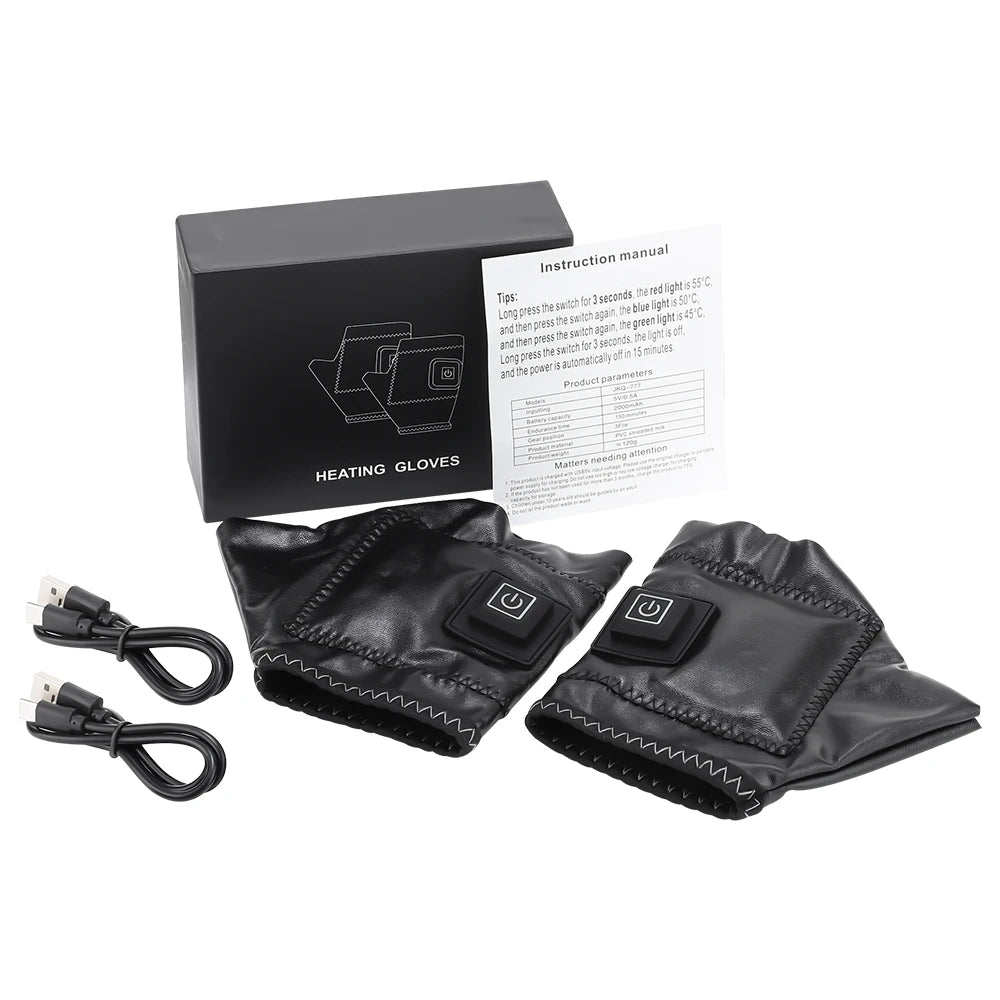 Smart Wireless Heating Leather Gloves Winter Thermal Fingerless Glove Hand Keep Warm