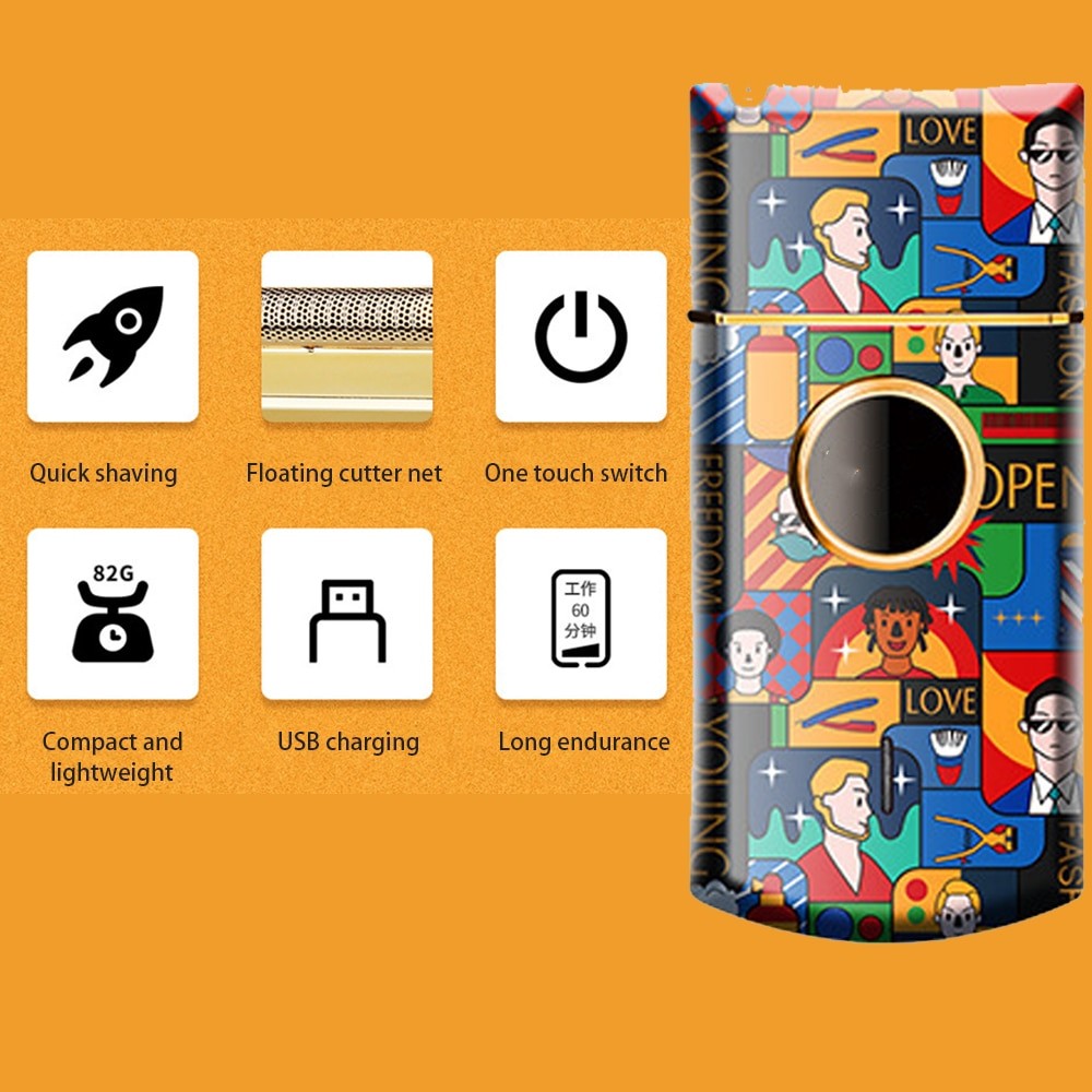 Titanium Double Foil Shaver Professional Barber Finishing Tool Reciprocating Random Graffiti Pattern Electric Men Razor