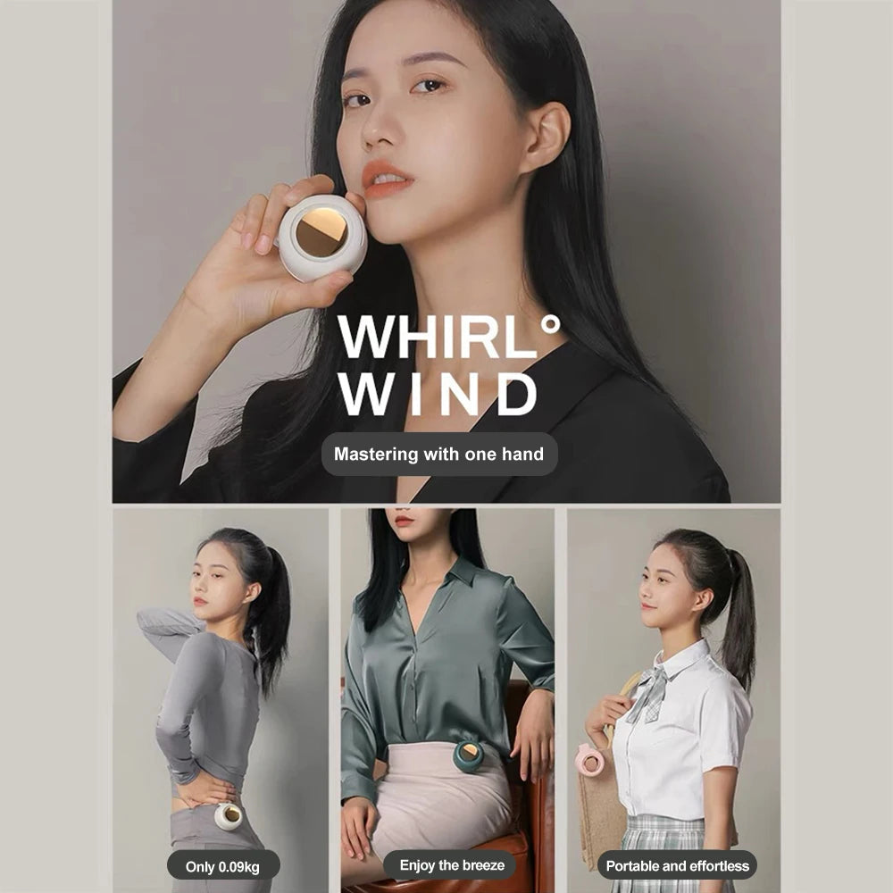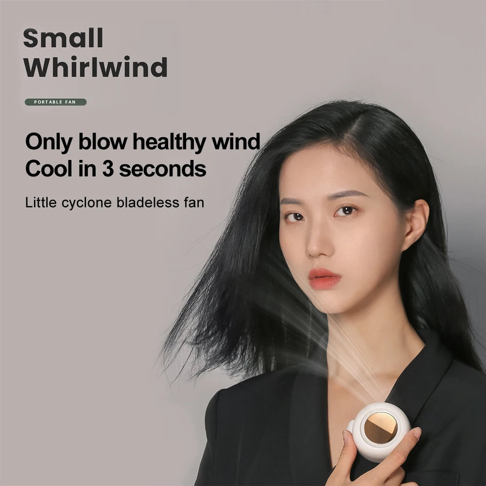 1: This small whirlwind bladeless fan is equipped with silicond clips that can be clamped in various places, such as bags, desktops, strollers, bedside, hats, clothes, etc.