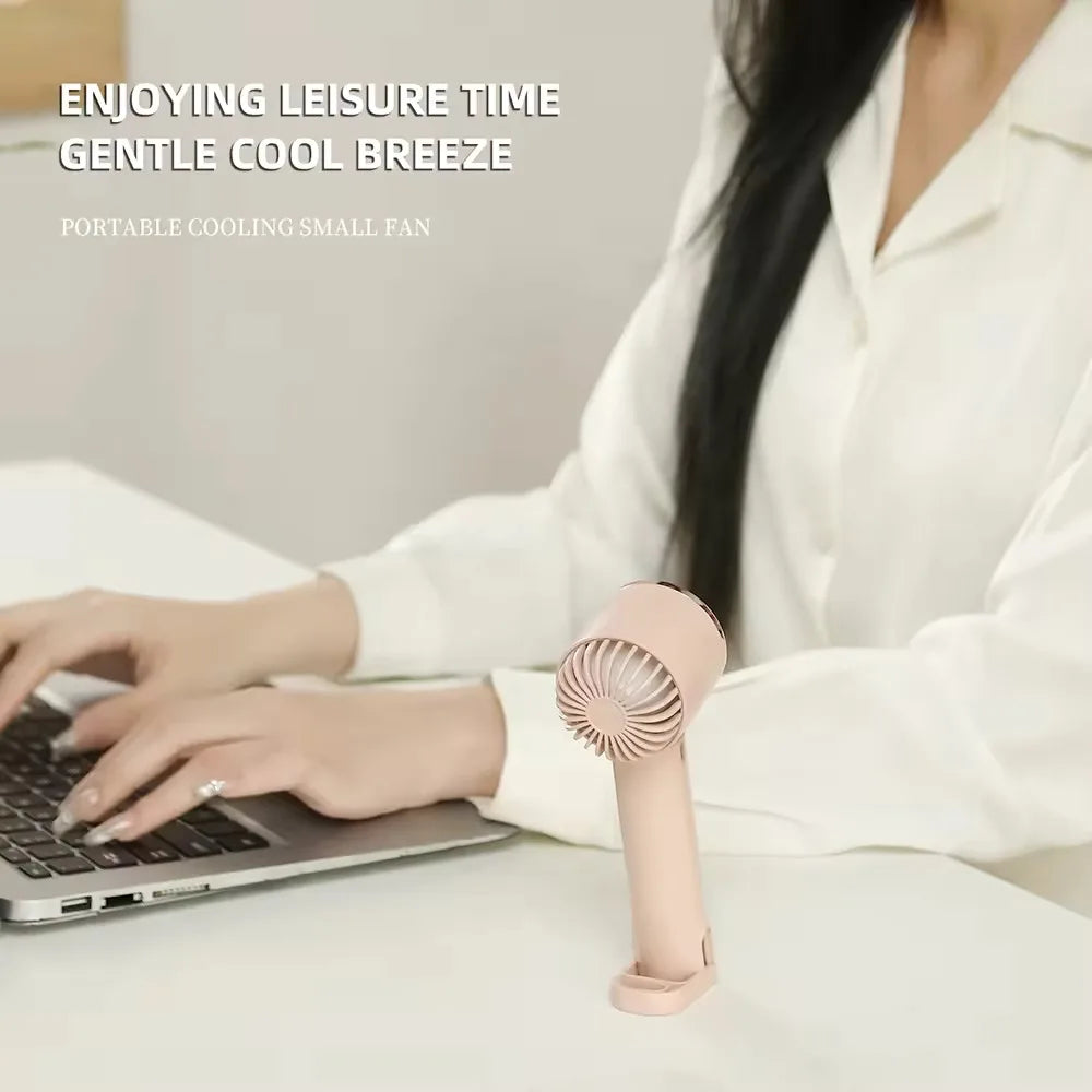 USB Rechargeable Mini Pocket Handheld Small Cooling Fan Portable Office Desktop Digital Display Cooler 3 Speed Foldable with Hook