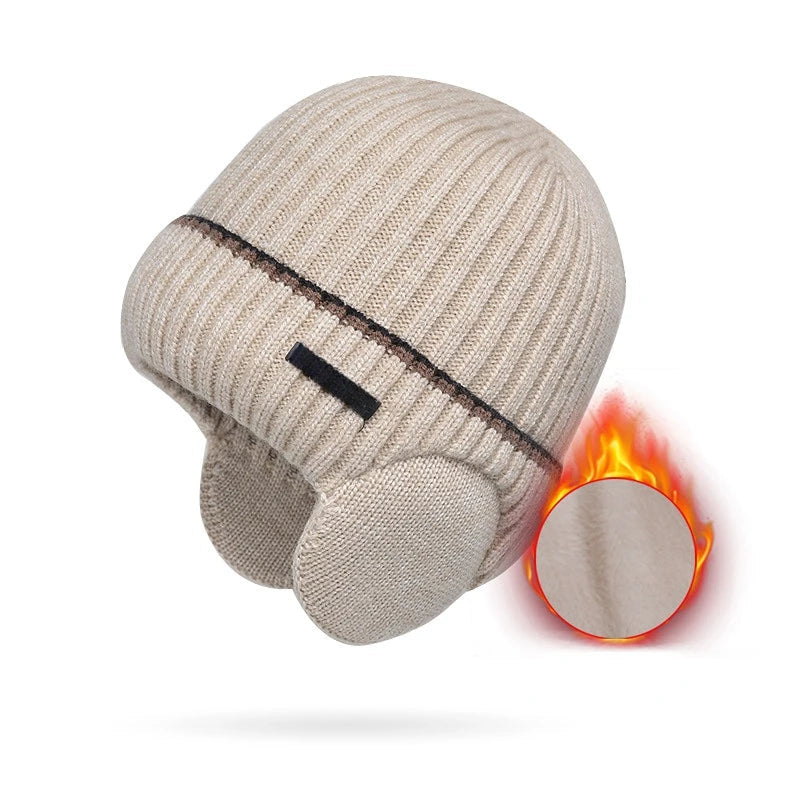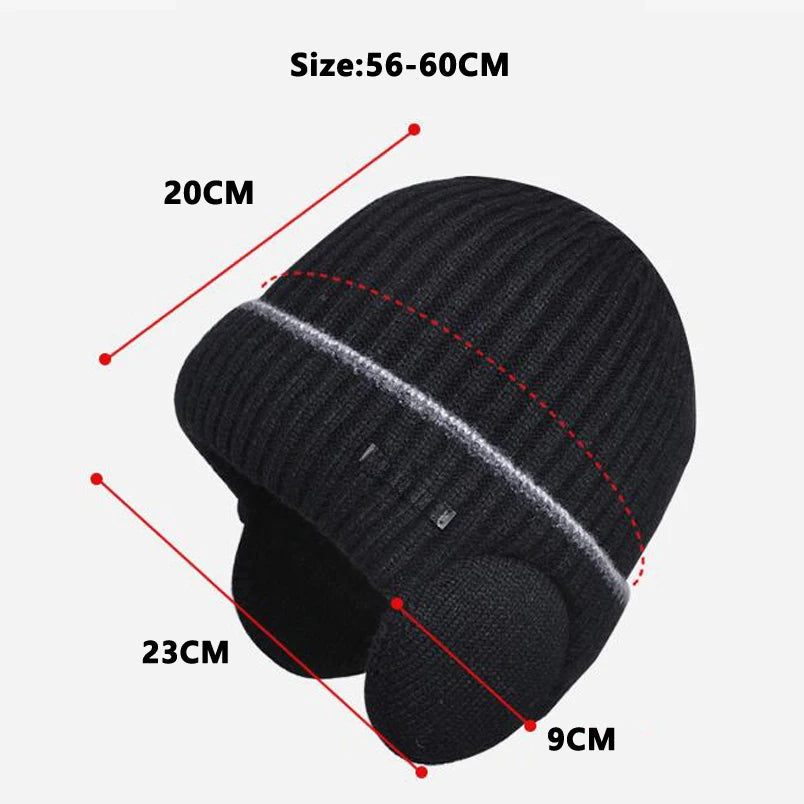 Winter Hats for Men and Women Unisex Knit Wool Hat Thick Fleece Lined Hat with Earflaps Stretch Fashion Winter Hats Pullover Cap